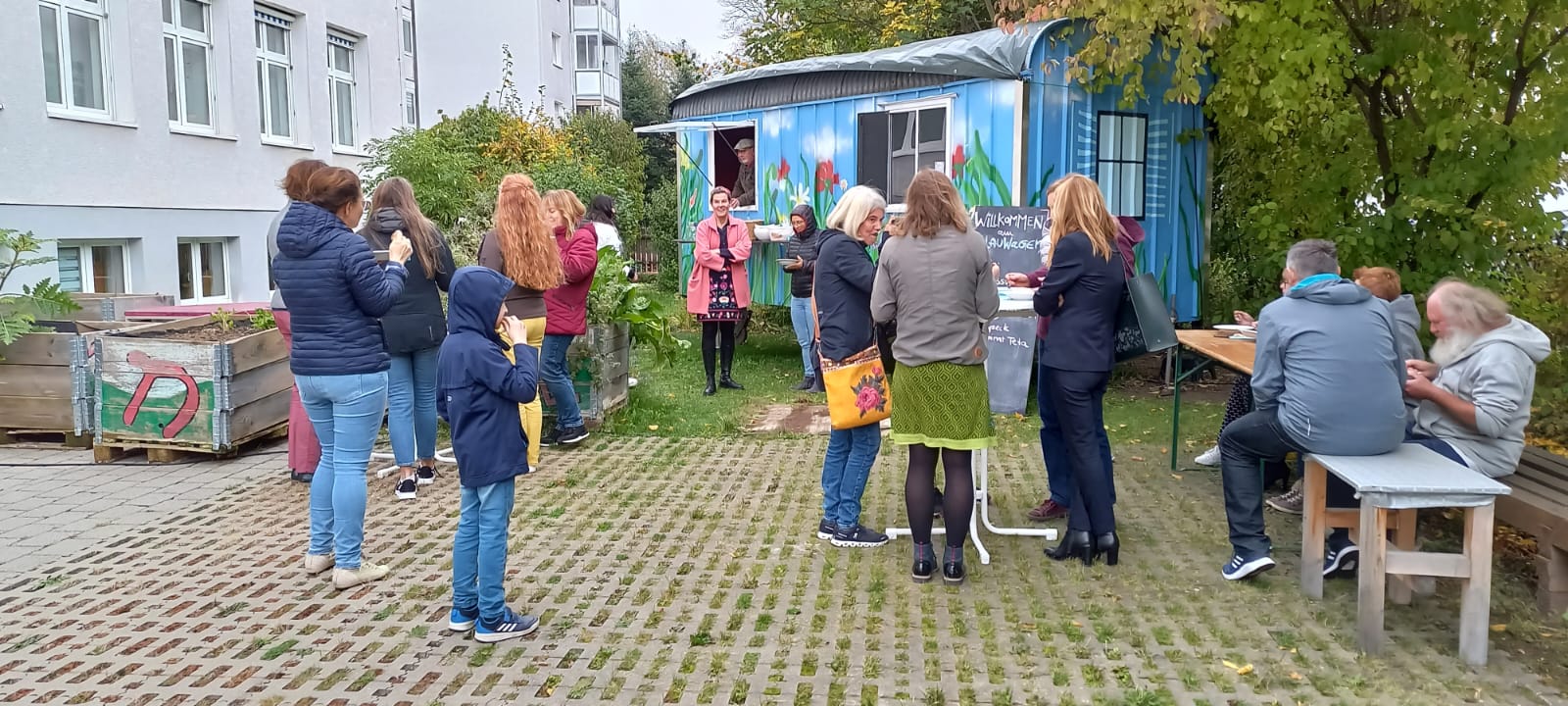 Bei leckerer Kürbissuppe a la Martin Jahn und salzigem Fingerfood stellt sich die neue Betriebsseelsorgerin Karolina Tomanek den Mitarbeiter*innen im Haus der katholischen Kirche vor. Den Fokus legte sie dabei, neben der eigenen Person und der zukünftige Ausrichtung ihrer Arbeit, auf das Projekt Blauwagen. Der Blauwagen steht derzeit im Garten des HDKs und diente auch hier wieder als Ort der Begegnung und des Genusses.