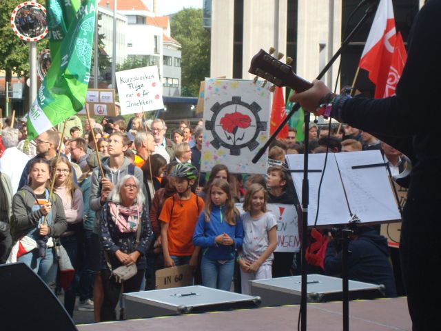 Am Freitag den 20. September waren wir gemeinsam mit vielen anderen bei der Kundgebung der Kilimaaktivisten von Fridays-For-Future in Aalens Innenstadt. Vor einer Menge von 1000 Menschen sprach in Vertretung für die Betriebsseelsorge unsere Mitarbeiterin Karolina Tomanek.