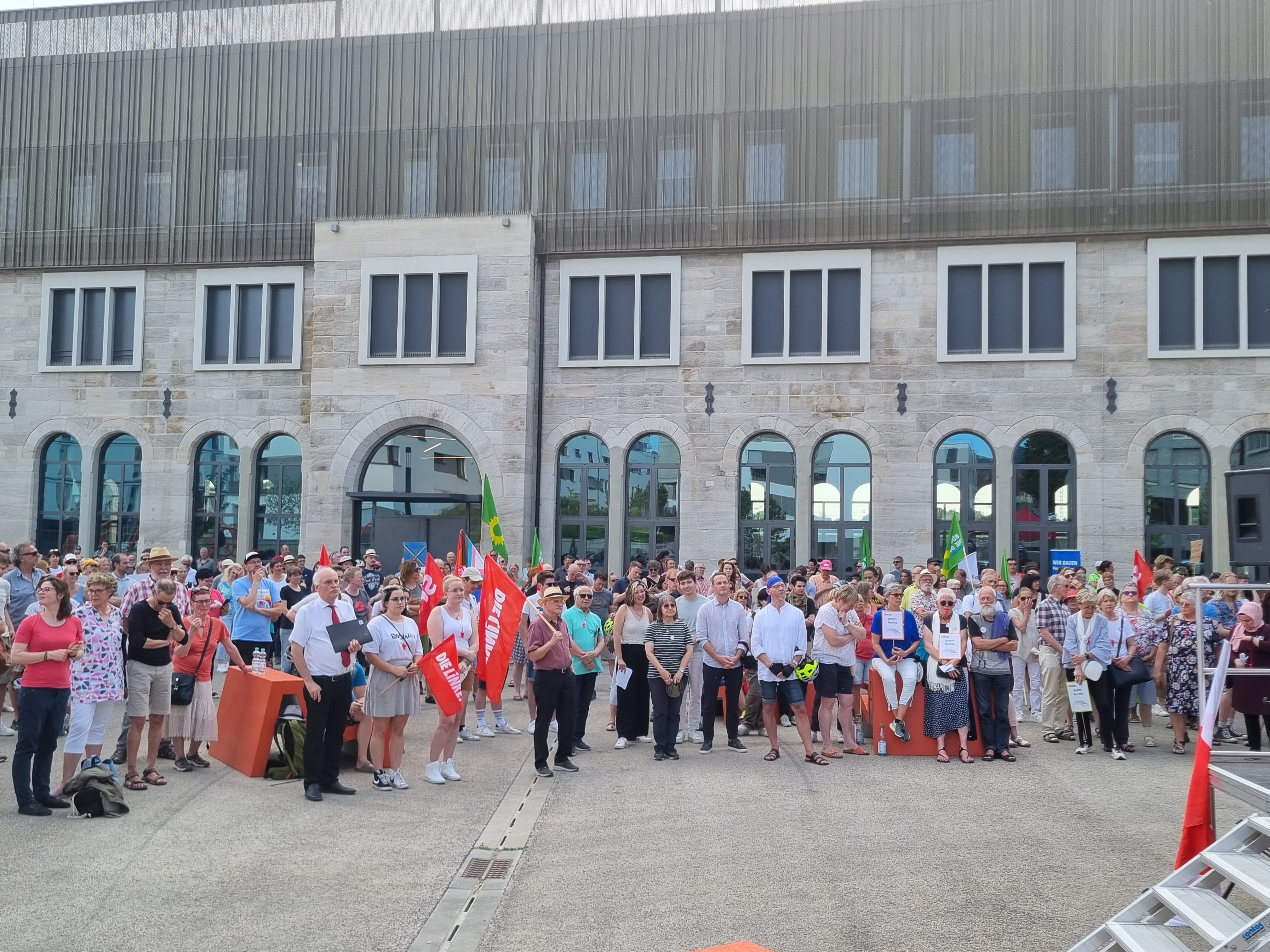 Parallel dazu fand der Europatag der AfD im Kulturbahnhof statt, zu dem Oberbürgermeister Frederick Brütting keine Einladung erhalten hatte. Stattdessen beteiligte er sich als Privatperson an der Gegenkundgebung auf dem Georg-Elser-Platz, die von kirchlichen und zivilgesellschaftlichen Stimmen unterstützt wurde.