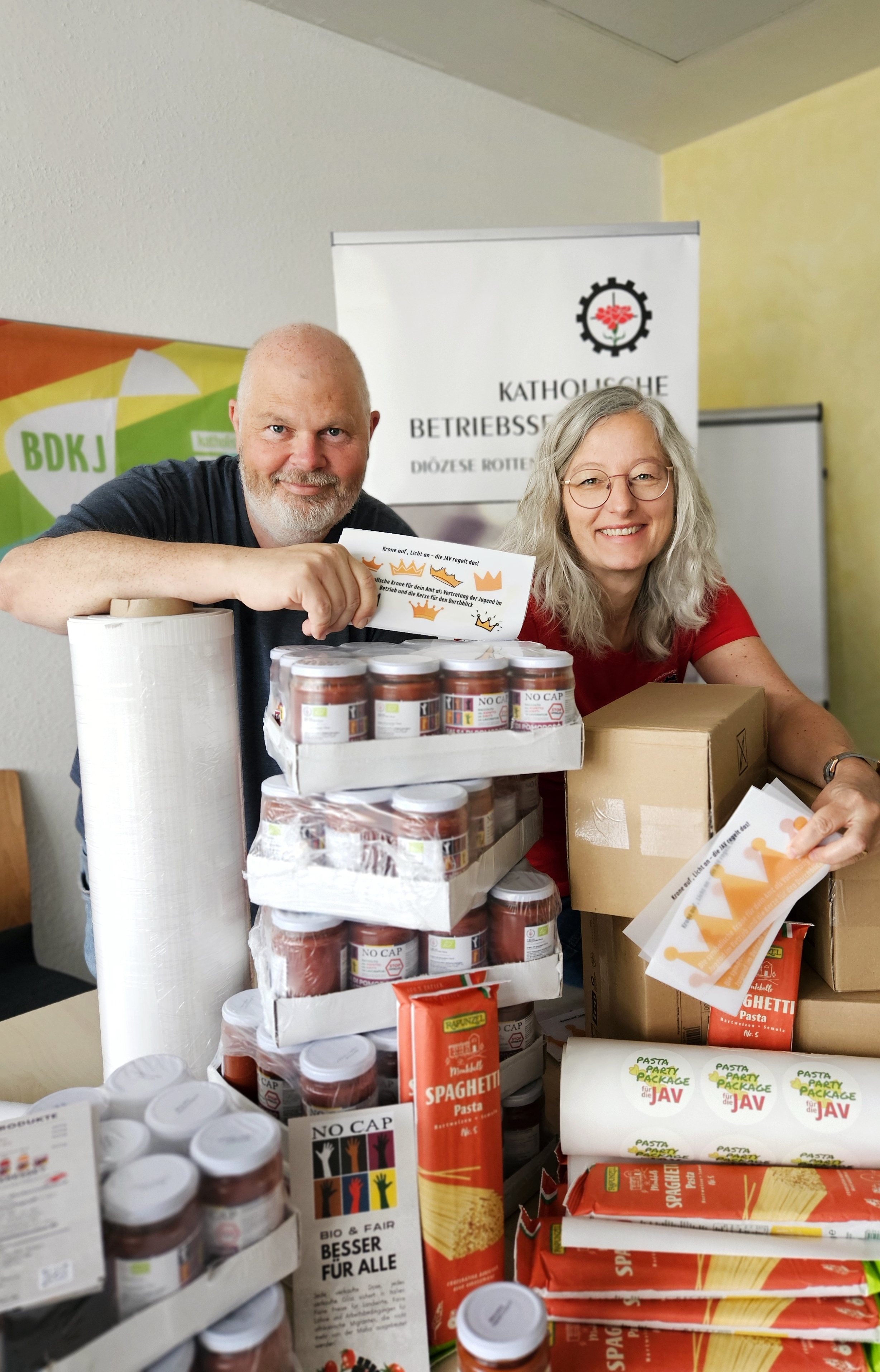 Birgit Elsasser von der Katholischen Betriebsseelsorge Ostwürttemberg und Jo Aubele von der Fachstelle J.A.B. – Jugend. Arbeit. Bildung des BDKJ haben eine kreative Dankeschön-Aktion ins Leben gerufen: das PastaPartyPackage. Es richtet sich an neu gewählte Jugend- und Auszubildendenvertretungen (JAV) in Betrieben der Region Ostwürttemberg.
