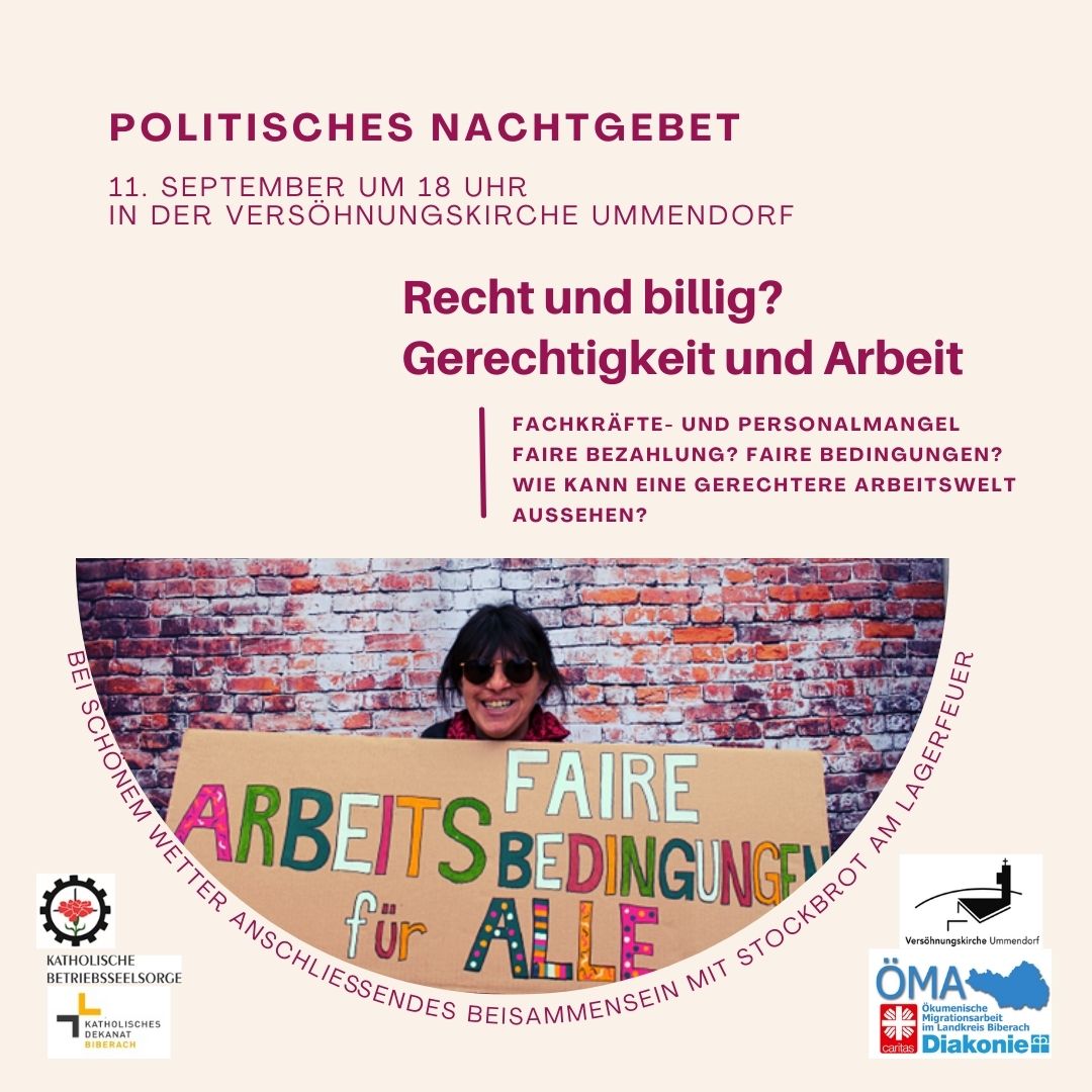 Für das Nachtgebet kooperieren Ökumenische Migrationsarbeit Biberach, die Katholische Betriebsseelsorge Biberach, sowie die ev. Kirchengemeinde in Ummendorf.