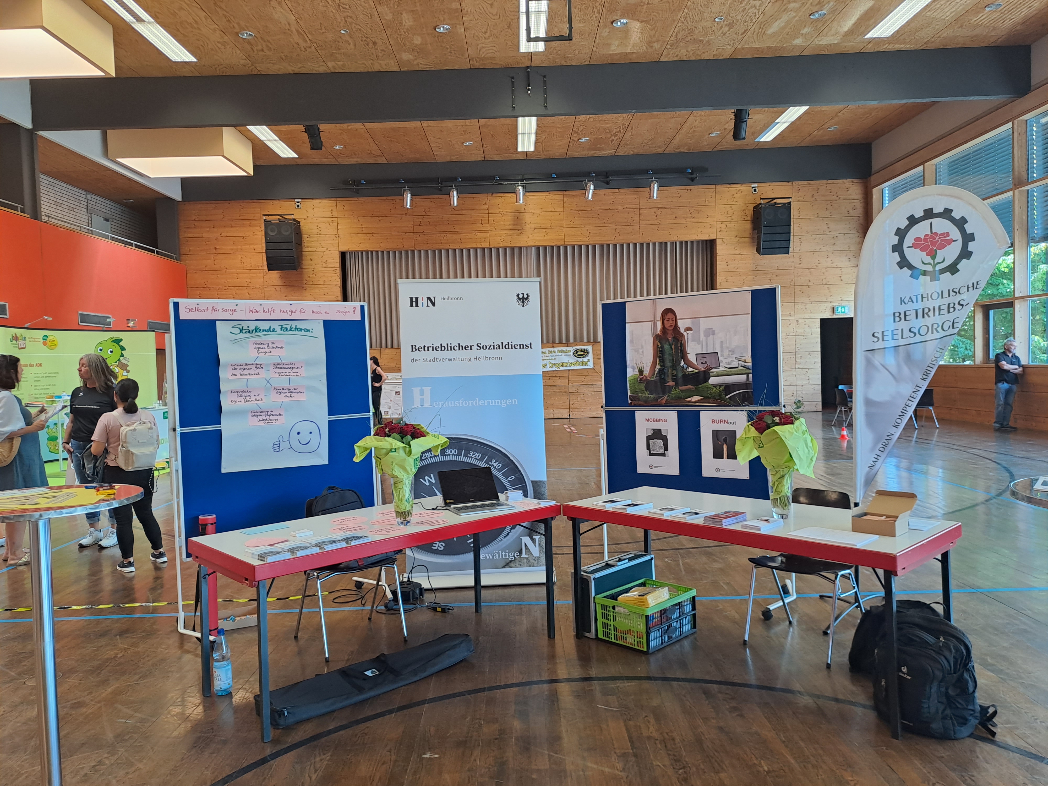 Die ersten beiden Veranstaltungen richteten sich gezielt an die Mitarbeiter*innen in den Tageseirichtungen für Kinder und Ganztagesangeboten. Der Stand der Betriebsseelsorge, in Zusammenarbeit mit dem Betrieblichen Sozialdienst der Stadtverwaltung Heilbronn, bot den Besuchern Informationen über das Beratungs- und Unterstützungsangebot der Betriebsseelsorge Heilbronn bei Mobbing und Burnout.