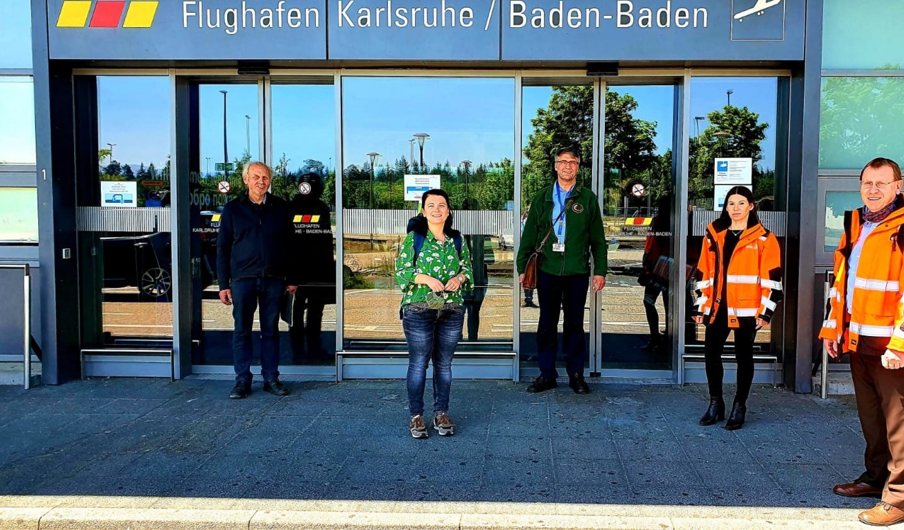 Berichte über die teilweise schlechten Arbeits- und Unterbringungsbedingungen osteuropäischer Erntehelfer*innen sind in den letzten Wochen durch die Presse gegangen. In einer gemeinsamen Aktion haben heute Mitarbeiter*innen der IG BAU, Faire Mobilität Mannheim und der Betriebsseelsorge DRS ankommende Erntehelfer*innen aus Rumänien am Baden-Airpark bei Karlsruhe begrüßt und ihnen - immer mit dem gebotenen Schutz angesichts der Corona-Einschränkungen - Informationsmaterial zu ihren Arbeitsrechten in rumänischer Sprache sowie eine Hotline-Notfallnummer der IG BAU/Fairen Mobilität überreicht. Auch ein Teil der anwesenden Abholer begrüßte die Aktion.