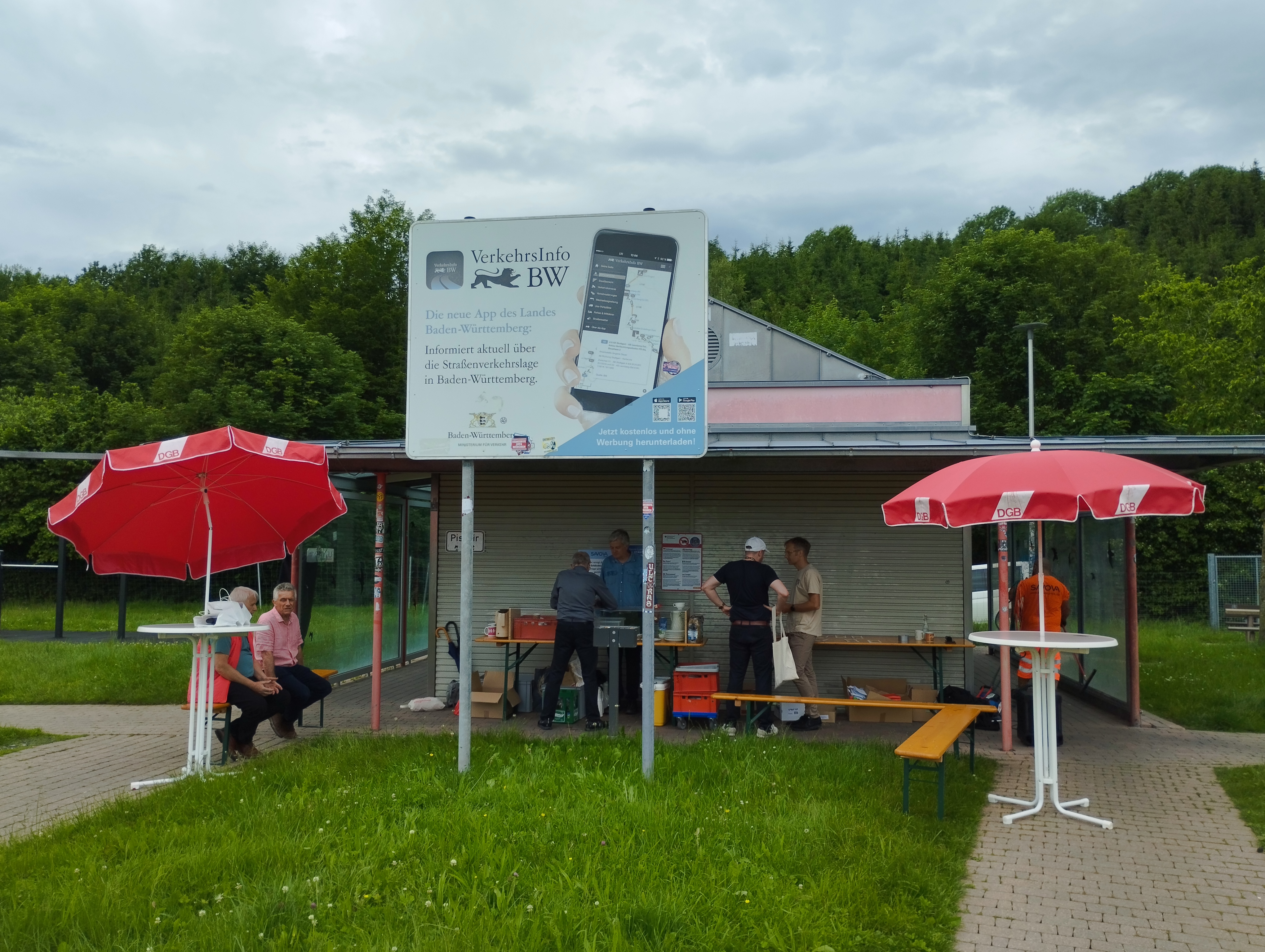 In Kooperation von Betriebsseelsorge Ravensburg (Philipp Groll), dem Kirchlichen Dienst in der Arbeitswelt - Prälatur Ulm (Albrecht Knoch), DGBSüdostwürttemberg (Frank Kappenberger), Faire Mobilität Freiburg (Suzana Maurer) und dem Förderverein „Galluskapelle“ haben wir am Samstag, 08.06.24 wieder eine Infoaktion am Parkplatz Winterberg A96 nahe Leutkirch im Allgäu  durchgeführt. Ein Infostand mit Essen und Getränken wurde aufgebaut sowie kleine Geschenktüten verteilt. Alle angetroffenen ausländischen Lkw-FahrerInnen haben Informationen in der Landessprache über ihre Arbeitsrechte in Deutschland und Europa sowie über das Beratungsangebot der Fairen Mobilität erhalten.