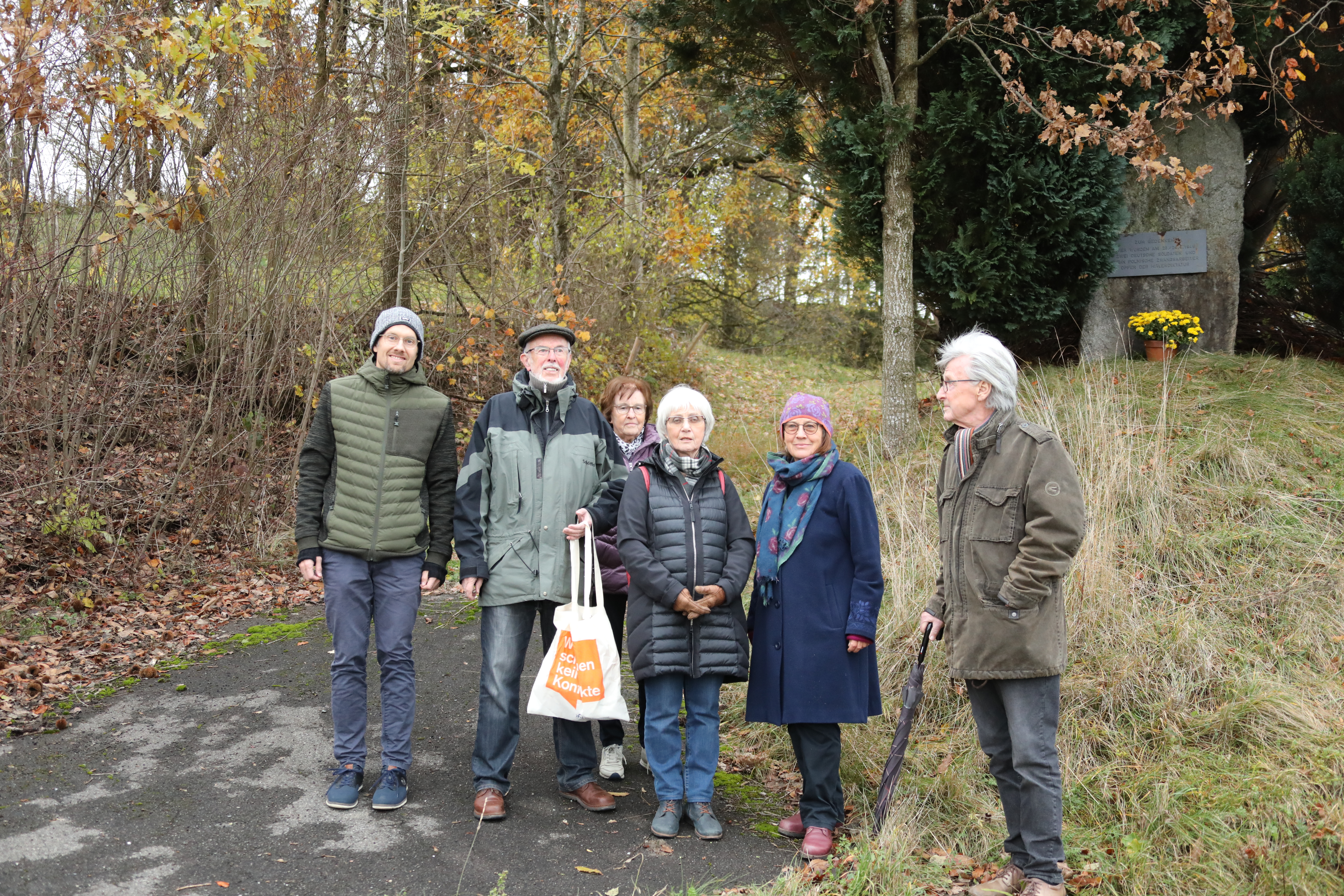 Am Samstag, den 18.11 versammelte sich eine kleine Gruppe von pax christi zusammen mit dem Betriebsseelsorger Philipp Groll am Gedenkstein Nahe Hannober. Hier wird jährlich 10 unbekannten hingerichteten polnischen Zwangsarbeitern und zwei ebenfalls hingerichteten Deserteuren gedacht. Kurz vor Kriegsende 1945 wurden sie dort von der Wehrmacht erschossen bzw. erhängt. Klaus Dick von pax christi erzählte nochmals die Geschichte der 12 Männer und erläuterte die Hintergründe. Anschließend wurde in der Kirche in Hannober zusammen mit dem Ortspfarrer Edgar Briemle ein Gottesienst gefeiert. Betriebsseelsorger Philipp Groll wies in der Predigt auf die Wichtigkeit einer Erinnerungskultur hin und stellte den Auftrag, der sich aus einer aktiven Erinnerung ergibt, dar.