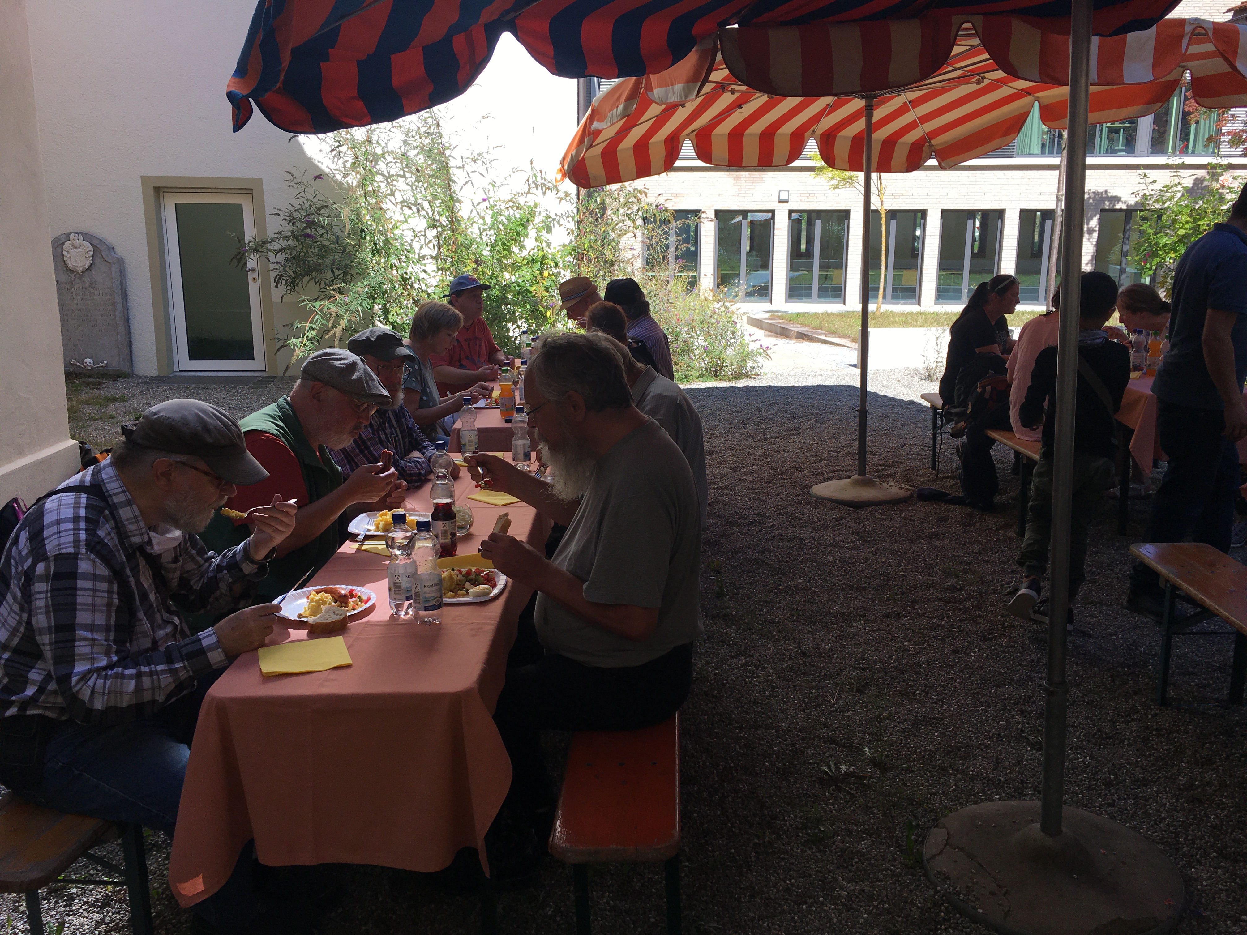 Als Ersatz lud der Arbeitslosentreff die Kolleg*innen aus Aalen ein, um sich wenigstens für einen Tag zu sehen und sich auszutauschen. Nach einem stärkenden Zweiten Frühstück bei der Betriebsseelsorge bekamen die Teilnehmenden mit einer Bilderschau einen Einblick in das 25-jährige Leben des Arbeitslosentreffs Ravensburg. Danach ging es in das historische Stadtzentrum, um einen Einblick in die wichtigste Stadt Oberschwabens zu erhalten. In Kleingruppen wurden Plätze, Häuser und Türme erkundet. So viel Wissen und Unterwegssein macht auch hungrig, da war es gut, sich im Innenhof des Gemeindehauses Liebfrauen bei einem Grillfest zu stärken. Rundum war es ein gelungener Tag, auch wenn die gemeinsame Zeit zu schnell verflog. Und immer wieder kam die Frage auf, wohin es nächstes Jahr gehen könnte. Da heißt es zunächst abwarten, wie sich die Zeiten entwickeln