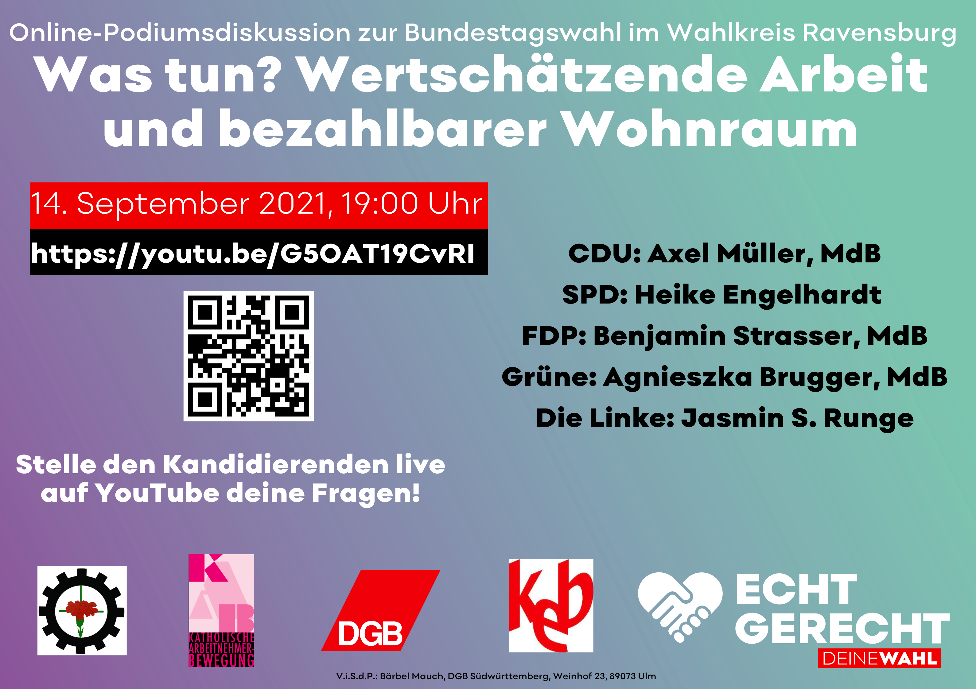 Online-Podiumsdiskussion zur Bundestagswahl mit den KandidatInnen des Landkreises Ravensburg