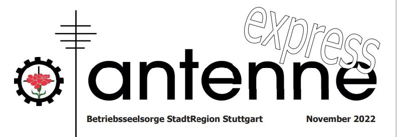 Antenne 9.12.2022 "antenne express November 2022 online" Themen - Buchtipp: Krankenhaus im Ausverkauf - Eindrücke aus der Betriebsseelsorge Stuttgart 2022 - Befund: "Lieferketten gestört" antenne express_November_2022pdf.pdf (14.54 MB)
