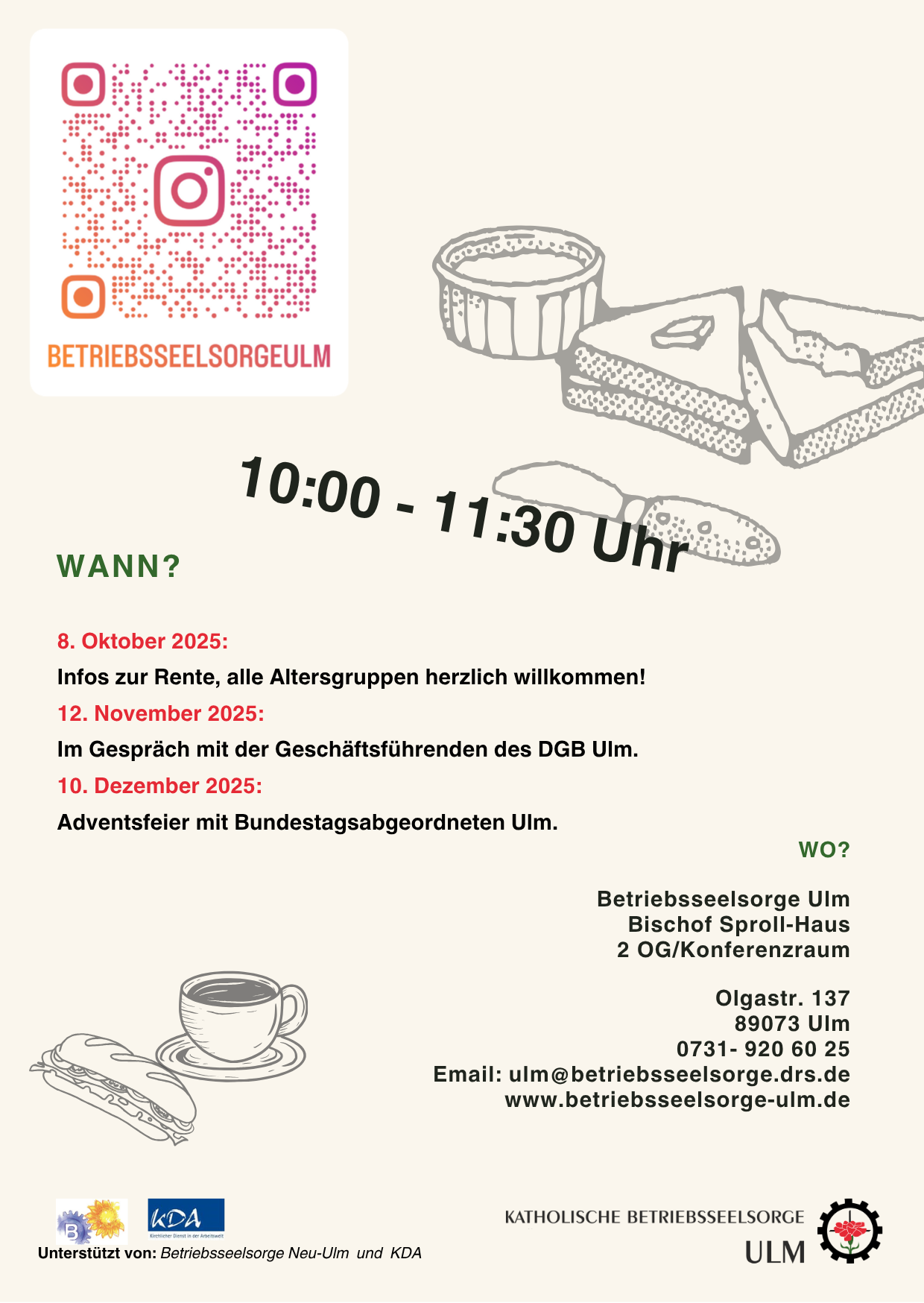 Jeden 2ten Mittwoch bei der Kath. Betriebsseelsorge Ulm: